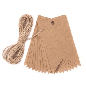 Zawieszki z papieru kraftowego o kształcie banera.