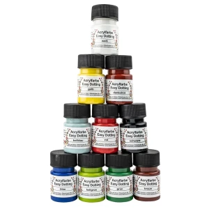 Są to farby akrylowe, na bazie wody. Wysoko napigmentowane idealne do techniki dottingu. Mają kremową konsystencji. Doskonale nadaje się również do innych technik malarstwa akrylowego. Możesz je ze sobą mieszać, dzięki czemu stworzyć nieskończoną ilość różnych kombinacji.