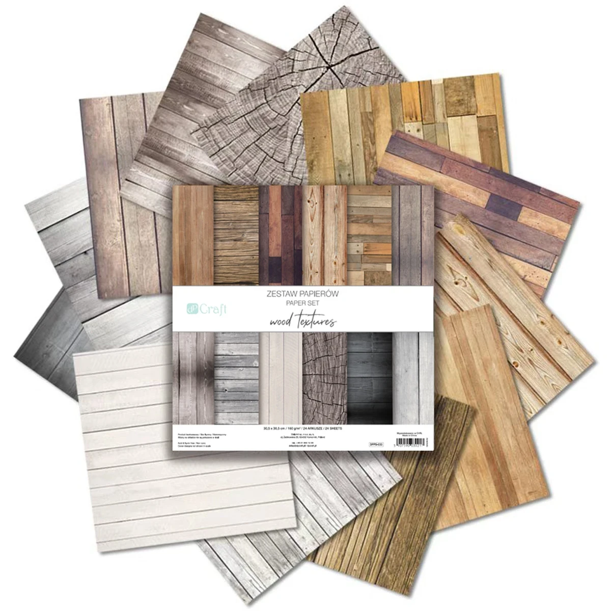 Zestaw papierów Wood Textures 30,5x30,5 cm 24 arkuszy