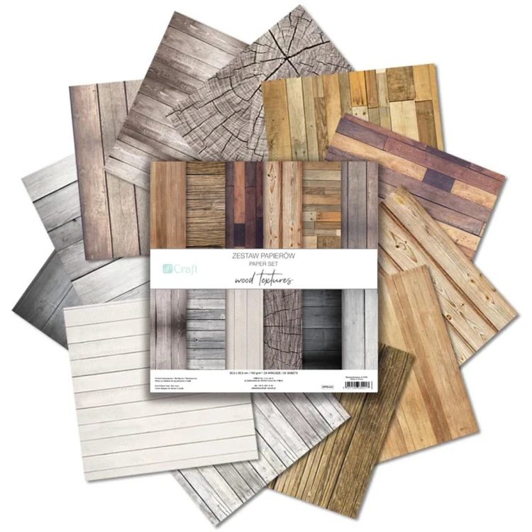 Zestaw papierów Wood Textures to naturalna kolekcja z realistycznymi wzorami desek i drewna w ciepłych odcieniach brązów, beży i bieli. Uniwersalny zestaw w formacie 30,5 x 30,5 cm idealny do scrapbookingu, cardmakingu oraz projektów rustykalnych.