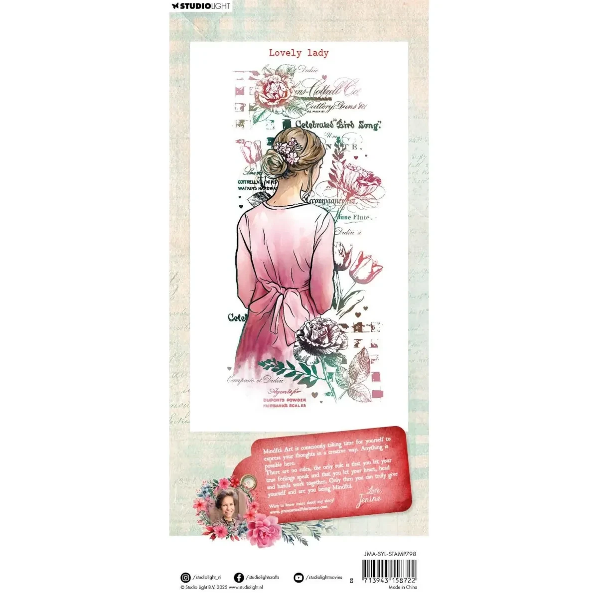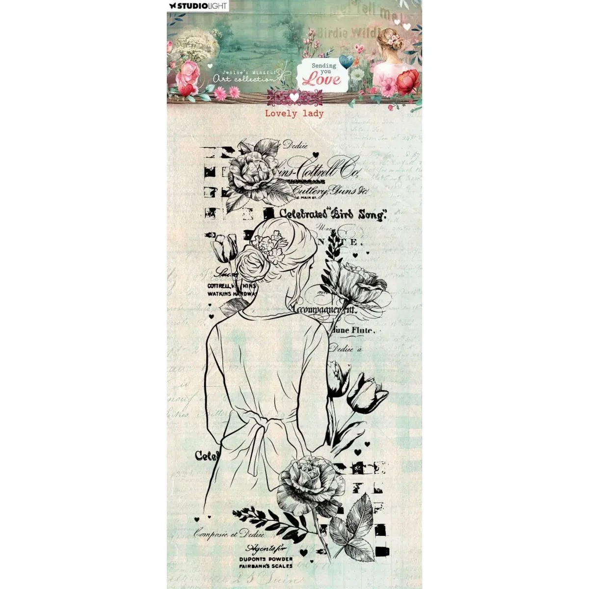 Zestaw Stempli Lovely Lady marki Studio Light, pochodzący z kolekcji "Jenine's Mindful Art - Sending You Love", to kolekcja przezroczystych stempli silikonowych przedstawiających wizerunki kobiet w romantycznym stylu vintage.