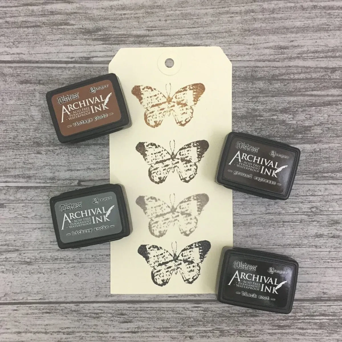 Zestaw zawiera 4 klasyczne kolory: Hickory Smoke, Vintage Photo, Ground Espresso, Black Soot. Dzięki permanentnej formule tusze nie rozmazują się pod wpływem: